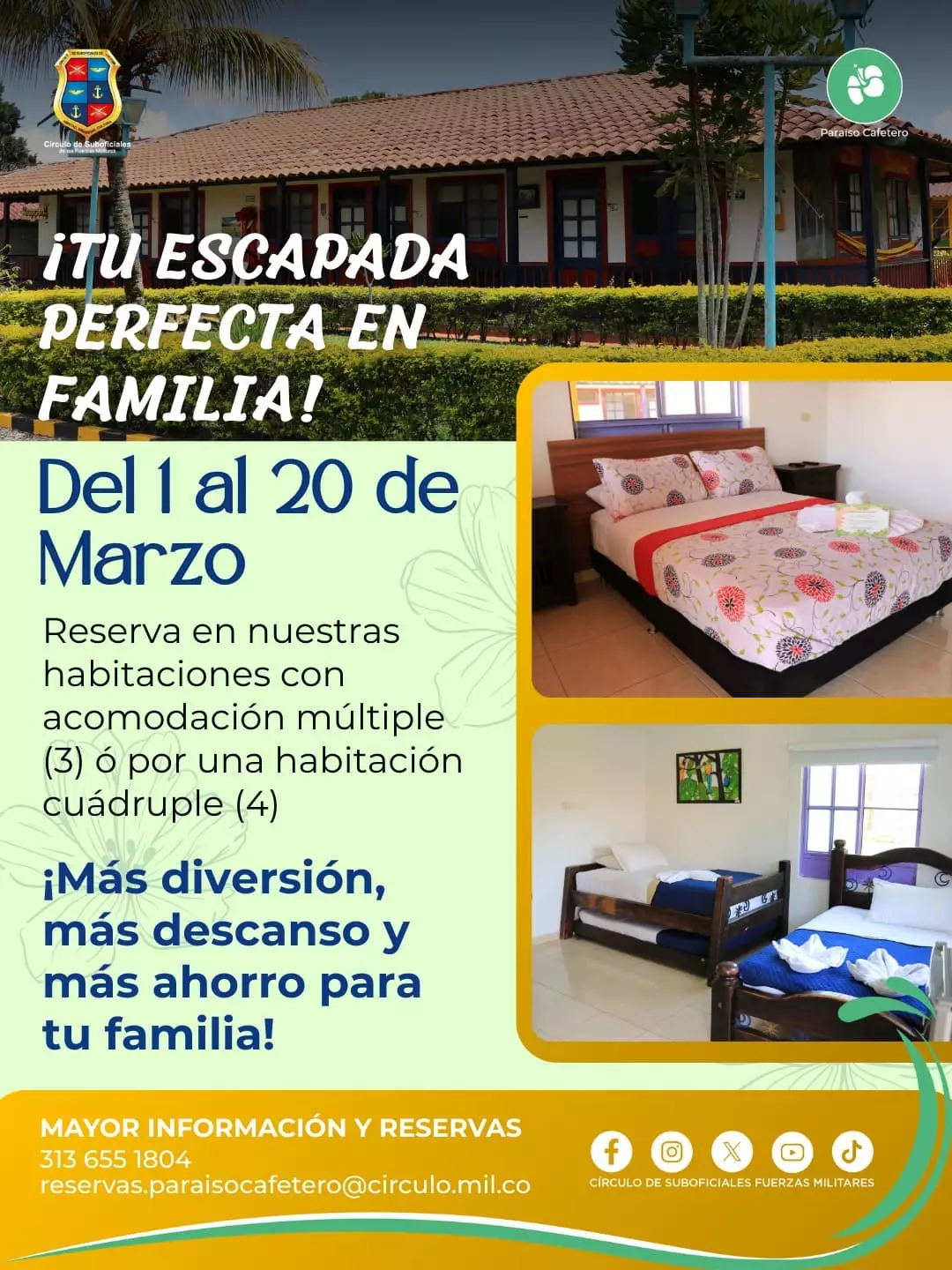 Reserva en nuestra Sede Vacacional Paraíso Cafetero y disfruta de un descuento especial