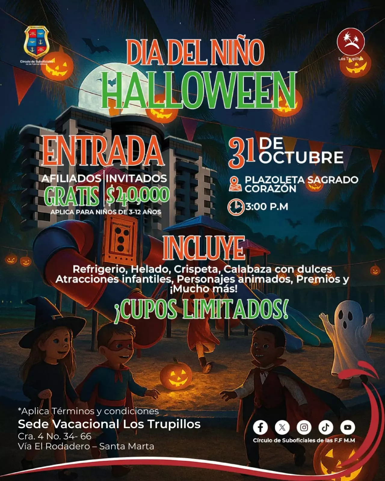 Este año la fiesta de Halloween se disfraza de: Diversión, música, sorpresas y muchos premios para todos los pequeñitos. ¡Prepárate par...